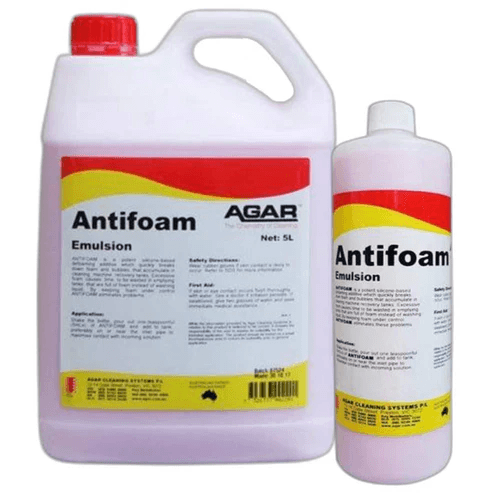 ANTIFOAM is a potent silicone-based defoaming additive which quickly breaks down foam and bubbles that accumulate in cleaning machine recovery tanks. Excessive foam causes time to be wasted in emptying tanks that are full of foam instead of washing liquid. By keeping foam under control, ANTIFOAM eliminates these problems.