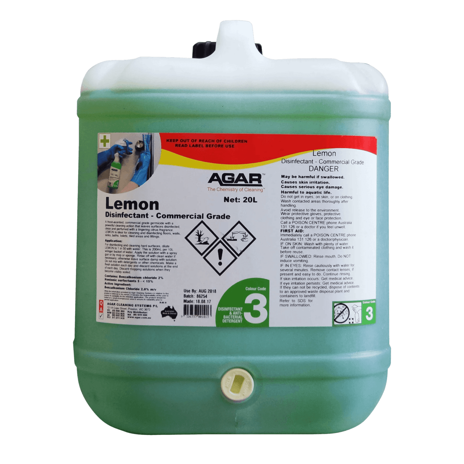 LEMON is a fresh, citrus-scented Commercial Grade Disinfectant with a powerful cleaning action that leaves surfaces disinfected, clean and perfumed with a lingering lemon fragrance.