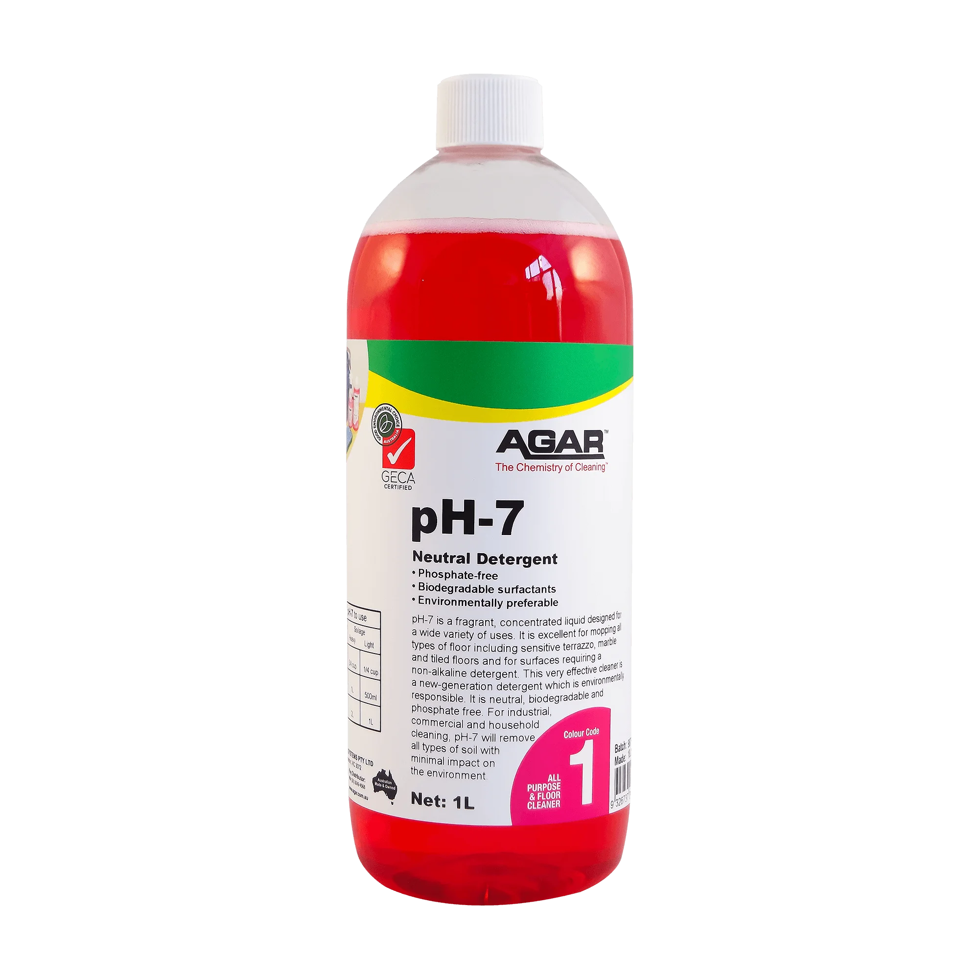 pH-7 is a neutral detergent that has a multitude of applications for cleaning hard surfaces. pH-7 has been specially formulated to be environmentally preferable.
