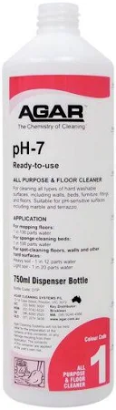 pH-7 will remove all soil and spillages including foodstuffs, drinks, cooking oil and general traffic dirt from all types of floors and other surfaces. It is recommended for use on alkali-sensitive surfaces such as terrazzo, marble or ceramic tiles. No rinsing is required.