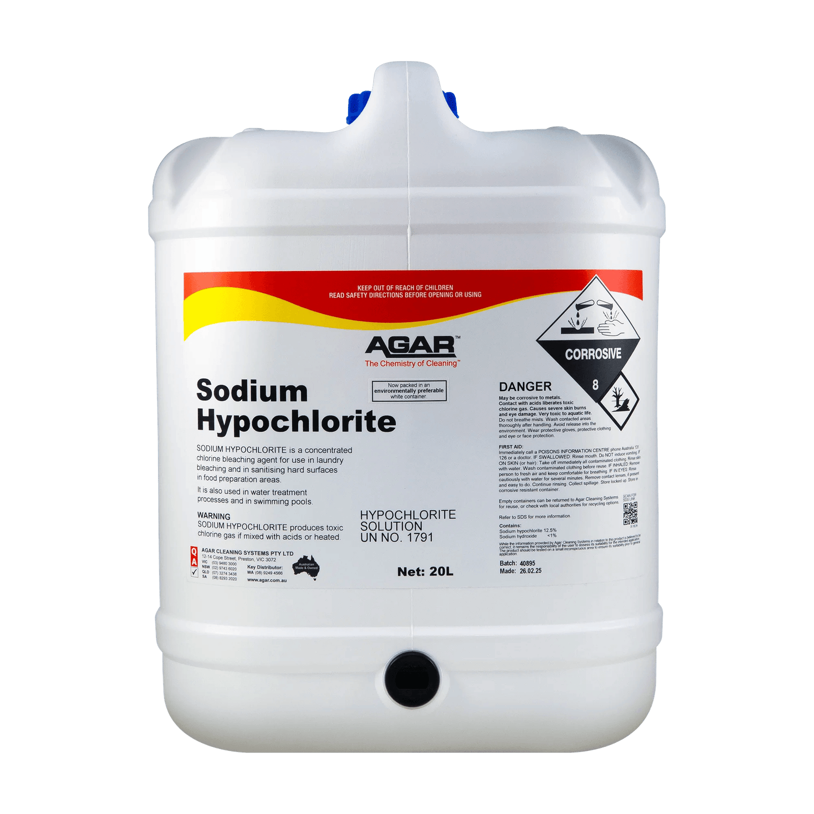SODIUM HYPOCHLORITE is a solution of sodium hypochlorite in water with an available chlorine content of 12.5% when packed. Because it offers a very effective method of killing undesirable micro-organisms (germs, bacteria, etc.), SODIUM HYPOCHLORITE is an excellent sanitiser.