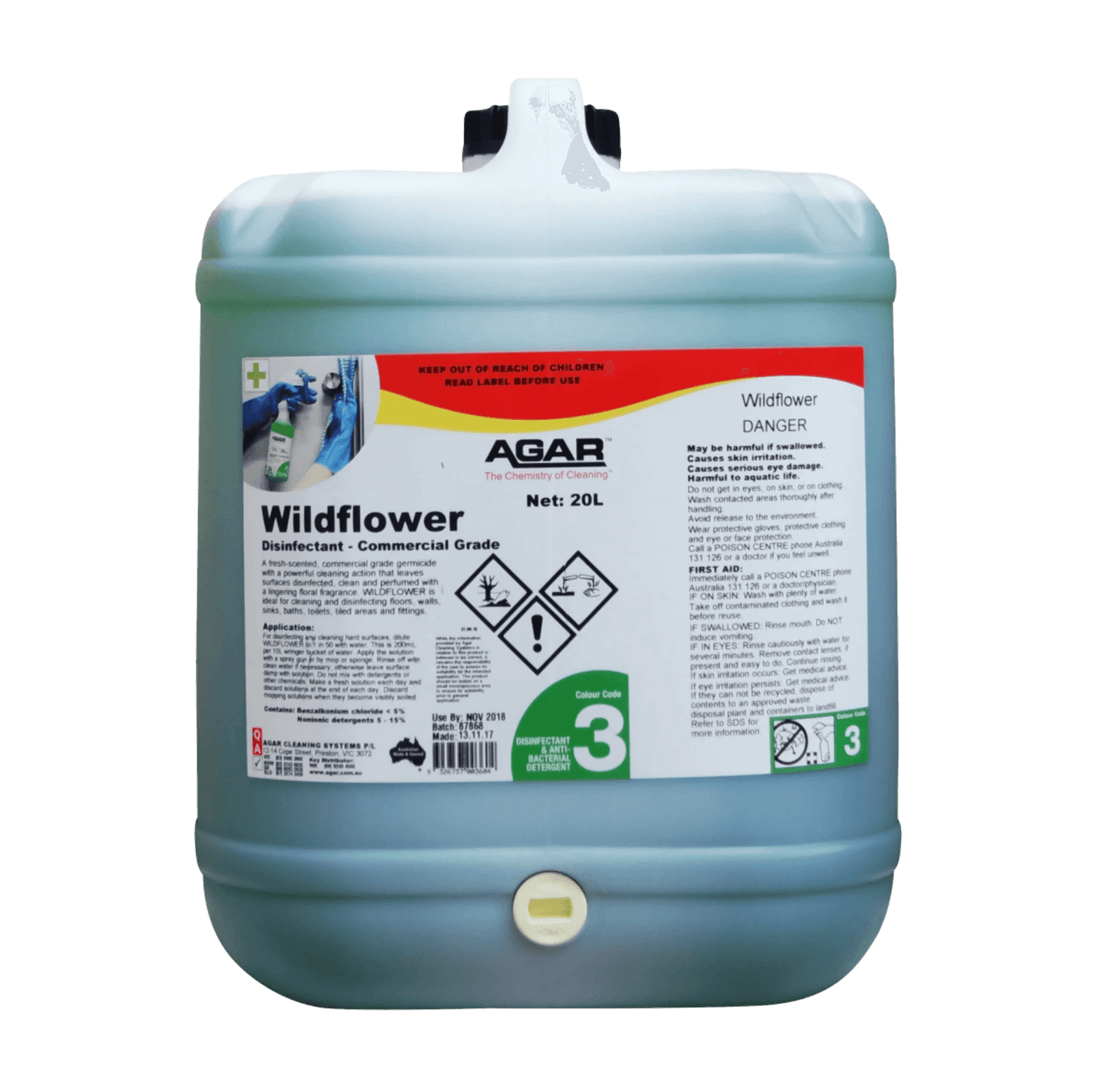 WILDFLOWER is designed for cleaning and disinfecting all washable hard surfaces, including floors, walls, sinks, baths, toilets, tiled areas and fittings. WILDFLOWER may also be used as an air-freshener.