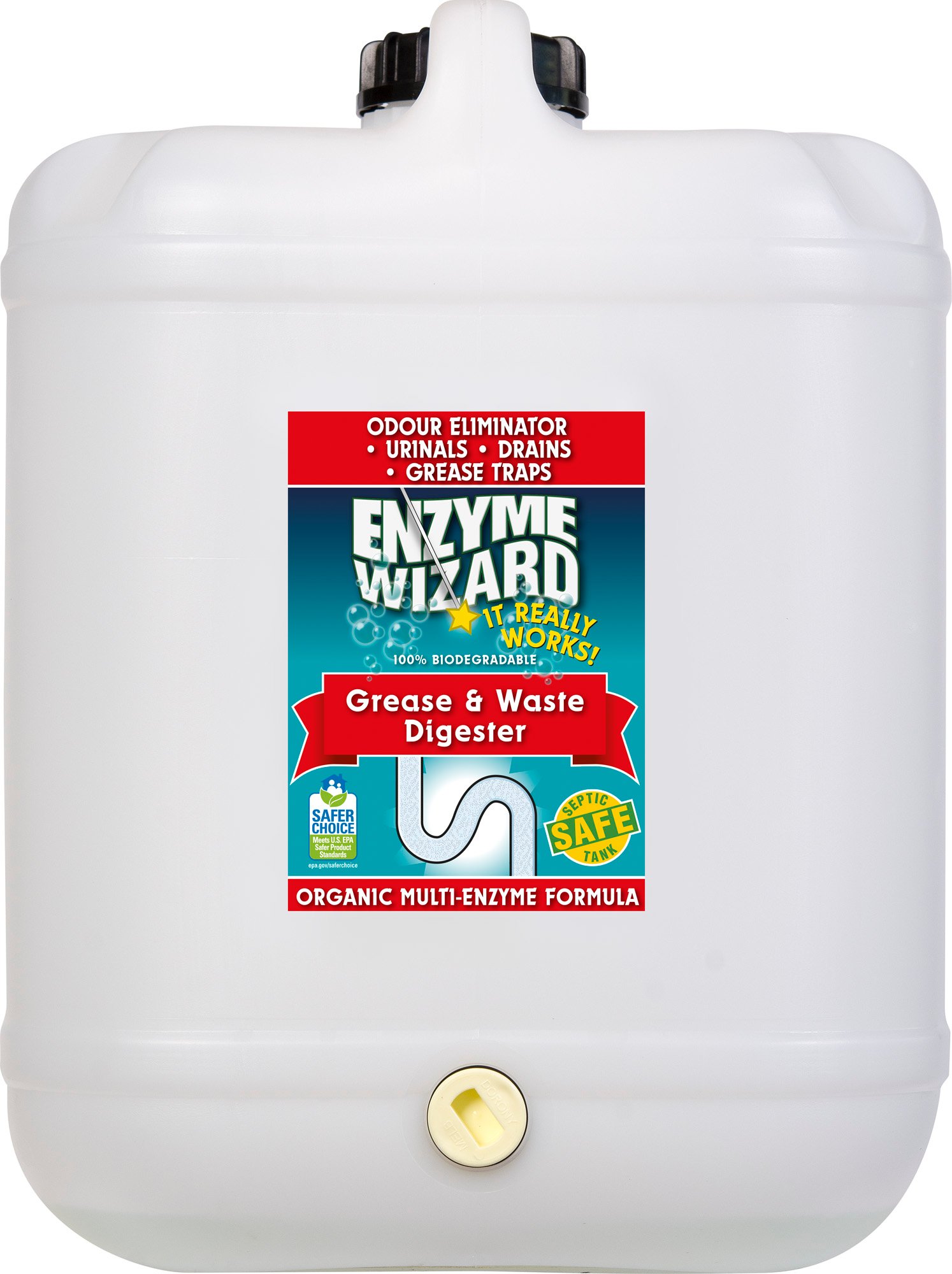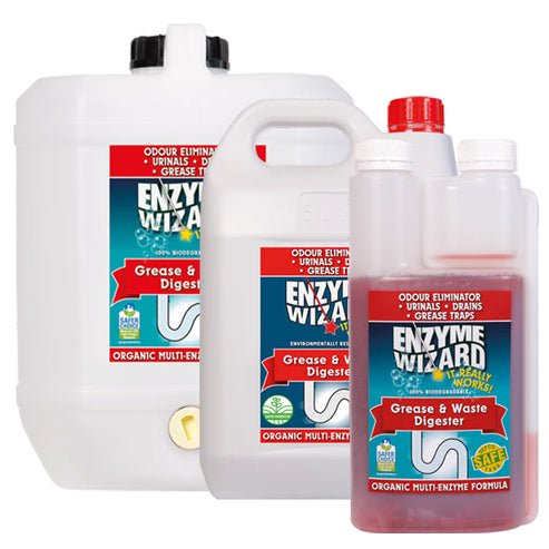 Enzyme Wizard Grease & Waste Digester – works naturally to help break down waste and grease. This helps improve grease trap performance.