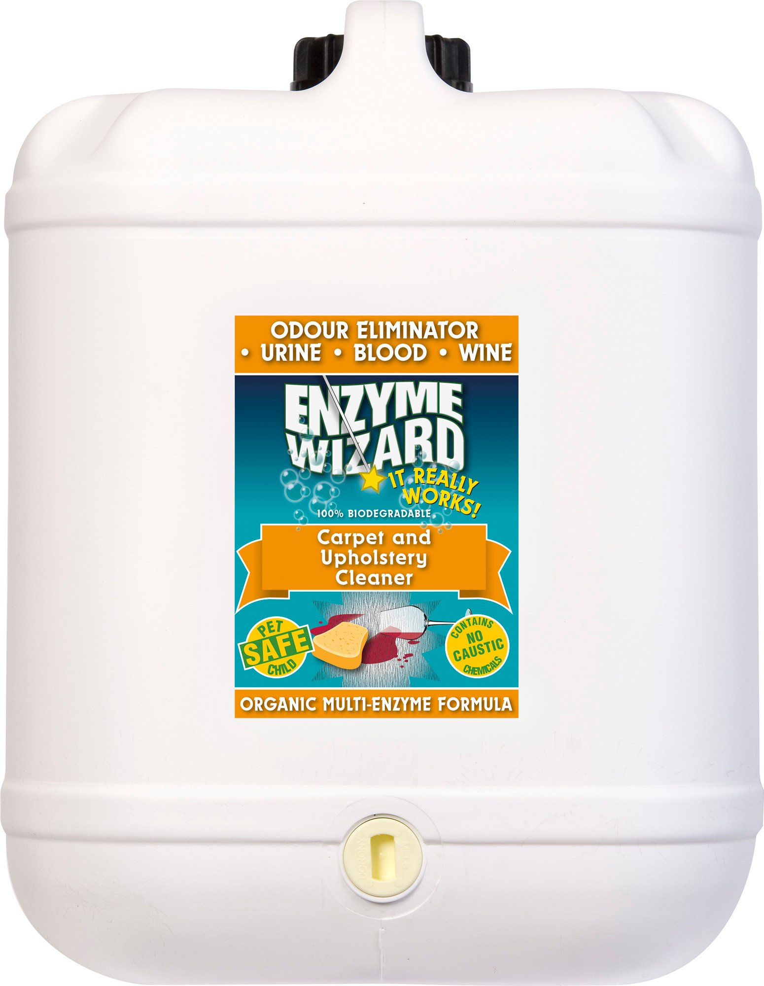 Organic Carpet and Upholstery Cleaner & Spot remover, pH Neutral formula that removes all pet stains, ink, dirt and grime, blood, wine and general food stains. Attacks odours at the source.