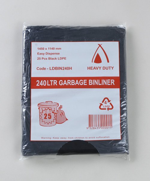 Huhtamaki Heavy Duty LDPE Garbage Bin Liner, 240L, Black