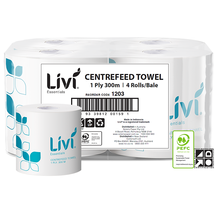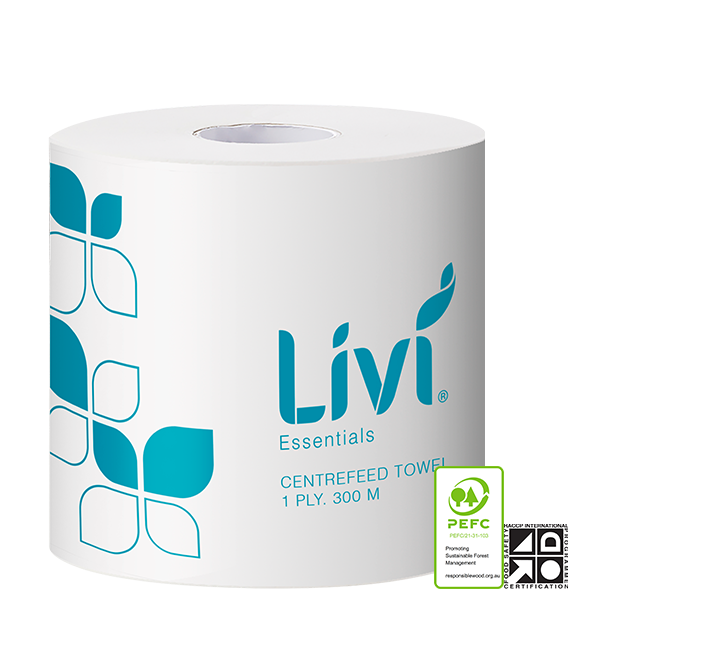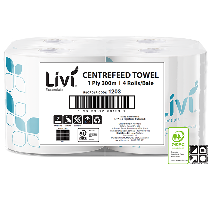 Livi Essentials Centrefeed Hand Towel Roll 1 Ply 300m Bale 1203