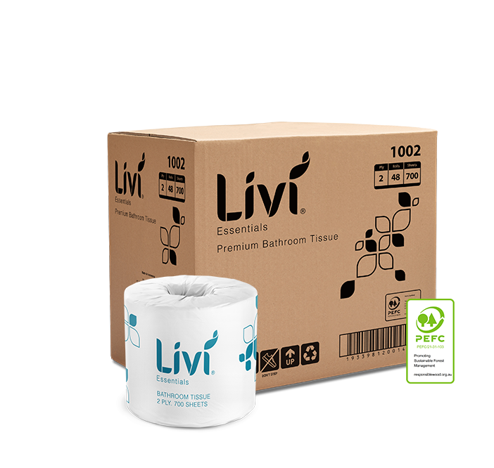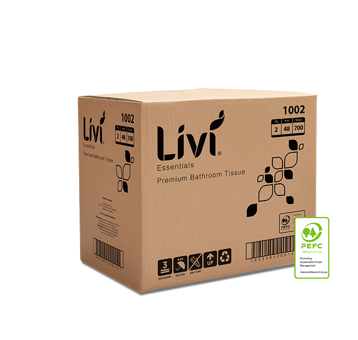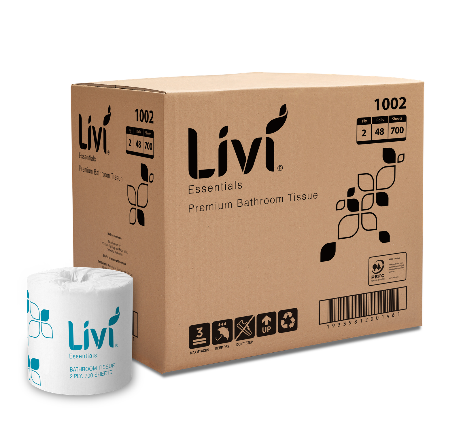 Everyday Executive quality – the Livi Essentials 1002 toilet paper delivers a soft and absorbent quality toilet paper at an affordable price. Each toilet paper roll has a lovely emboss for comfort and performance and individual wrapped for fresh presentation in modern facilities. The Livi Essentials 1002 is available in 48 toilet paper rolls per carton, and is ideal for small to medium sized washrooms.
