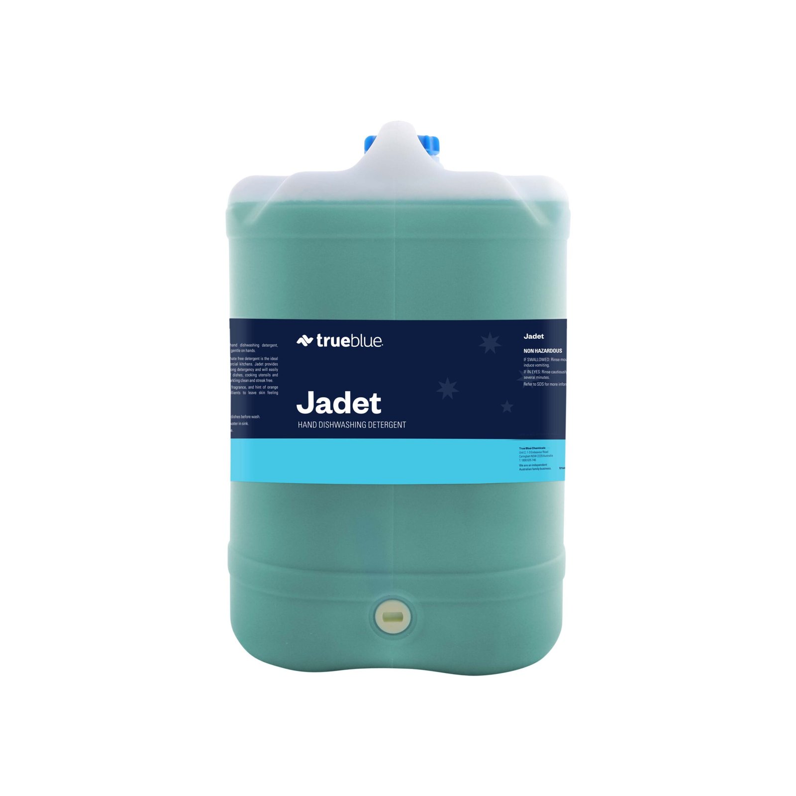 True Blues Jadet’s cleaning ability is long lasting even under the most trying conditions found in commercial kitchens. Jadet’s excellent rinsability and exceptional hard water tolerance, coupled with superior foaming and wetting agents make Jadet ideal for hand washing of dishes, cooking utensils and glassware.